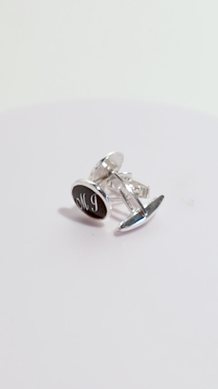 Gemelos de plata de ley 925 con forma redonda y con fondo de nácar color negro.