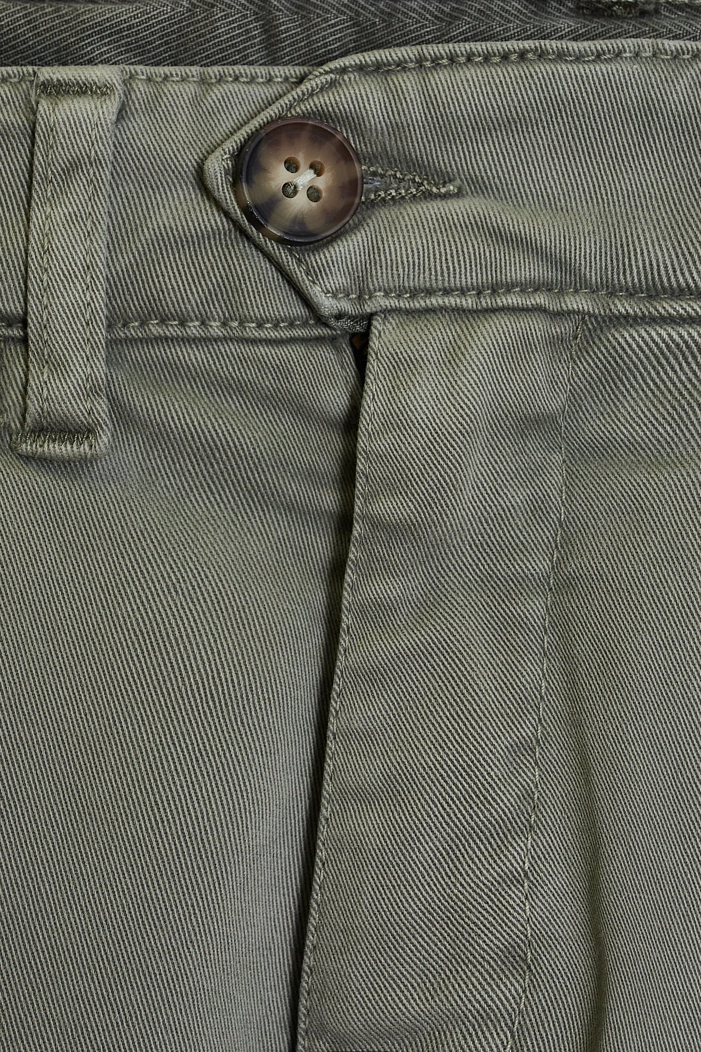 Pantalón tipo cargo confeccionado con tejido algodón en color verde. La versión más casual de nuestro pantalón cargo. Presenta bolsillos laterales con fuelle. Un tejido resistente y muy versátil.