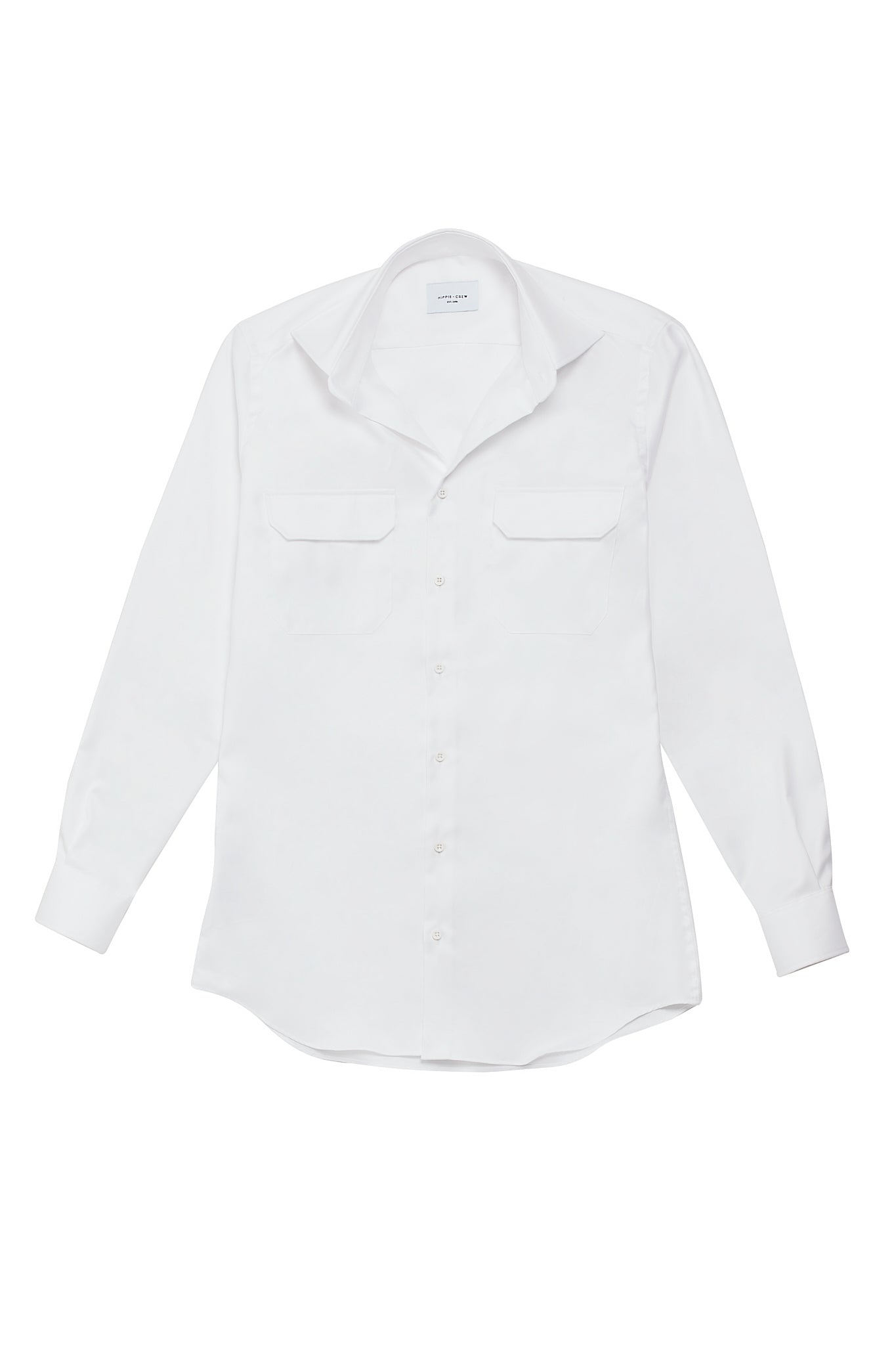 Camisa confeccionada en tejido travel de fácil plancha color blanca. La opción perfecta para llevar en la maleta o usar mientras se viaja. Presenta cuello italiano con pala de 8cm y bolsillos en el pecho.