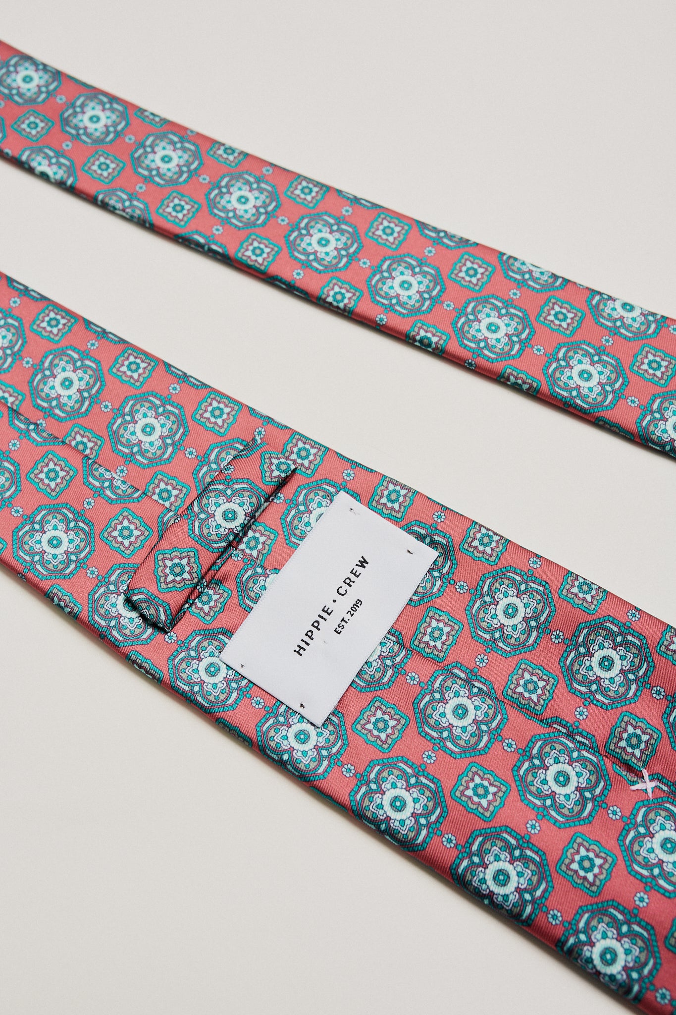 Corbata de 3 pliegues confeccionada totalmente a mano en Italia. Color rojo suave con motivos geométricos.