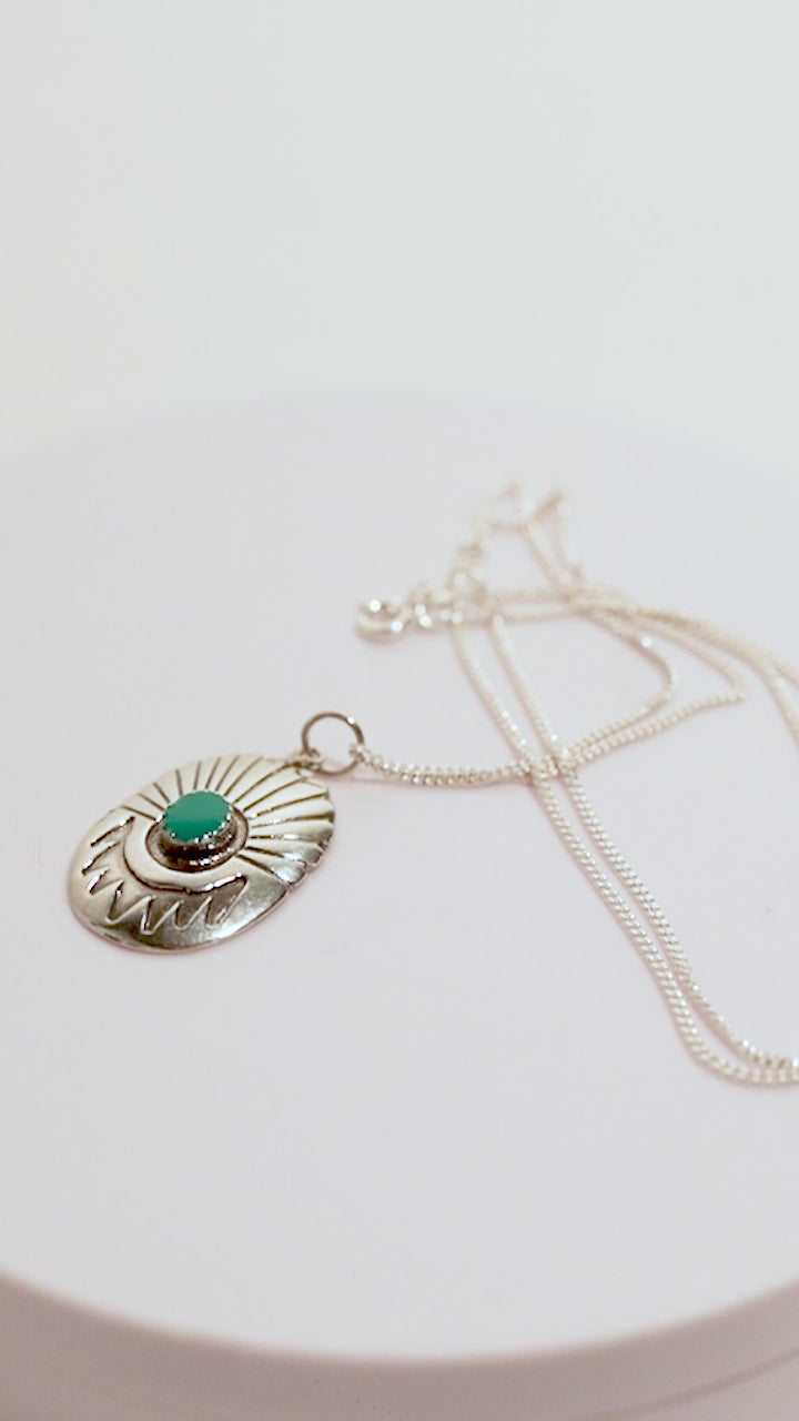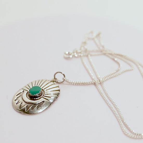 Collar de plata con formato cadena con abalorio de inspiración navajo en forma de concho.