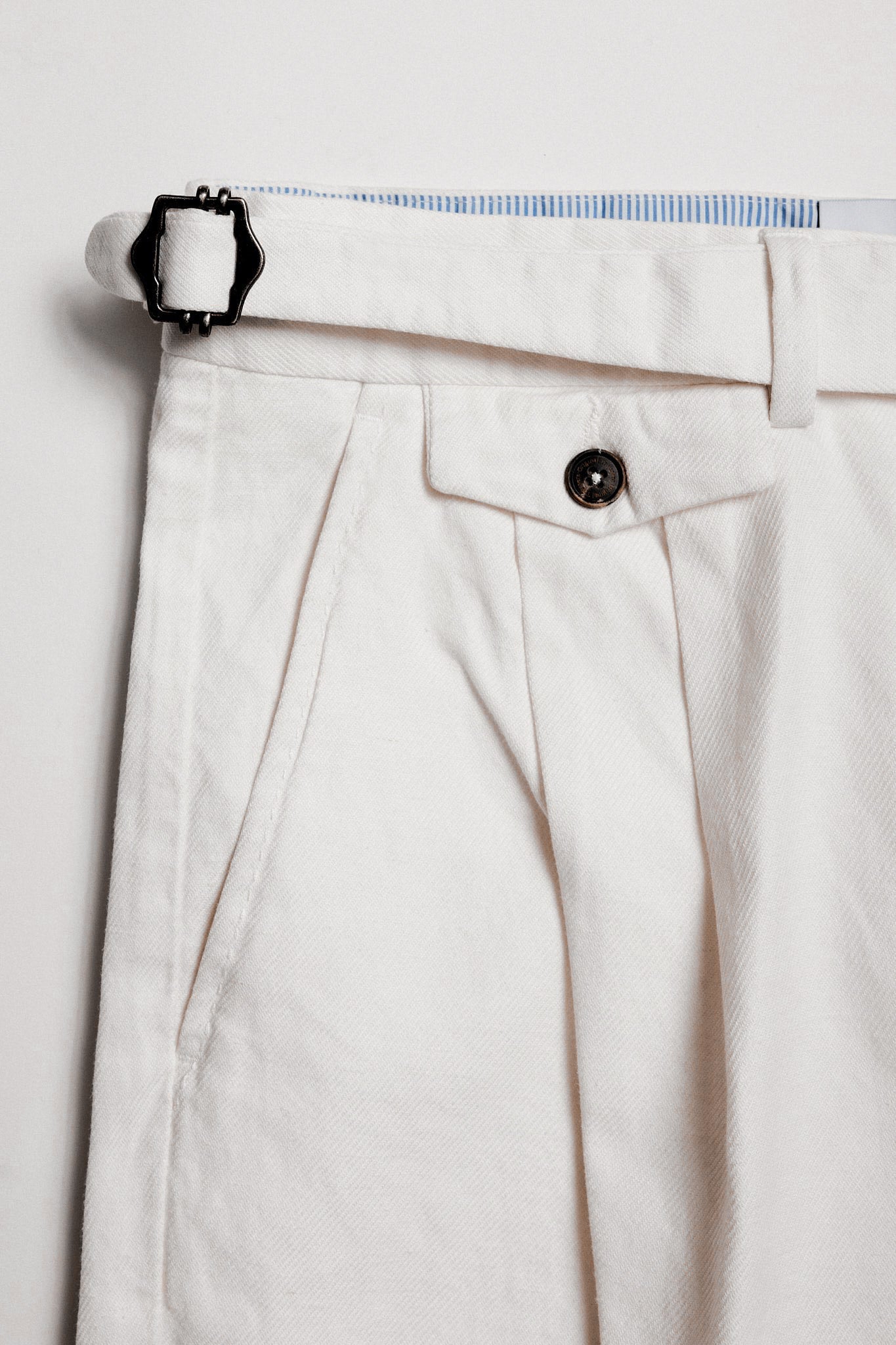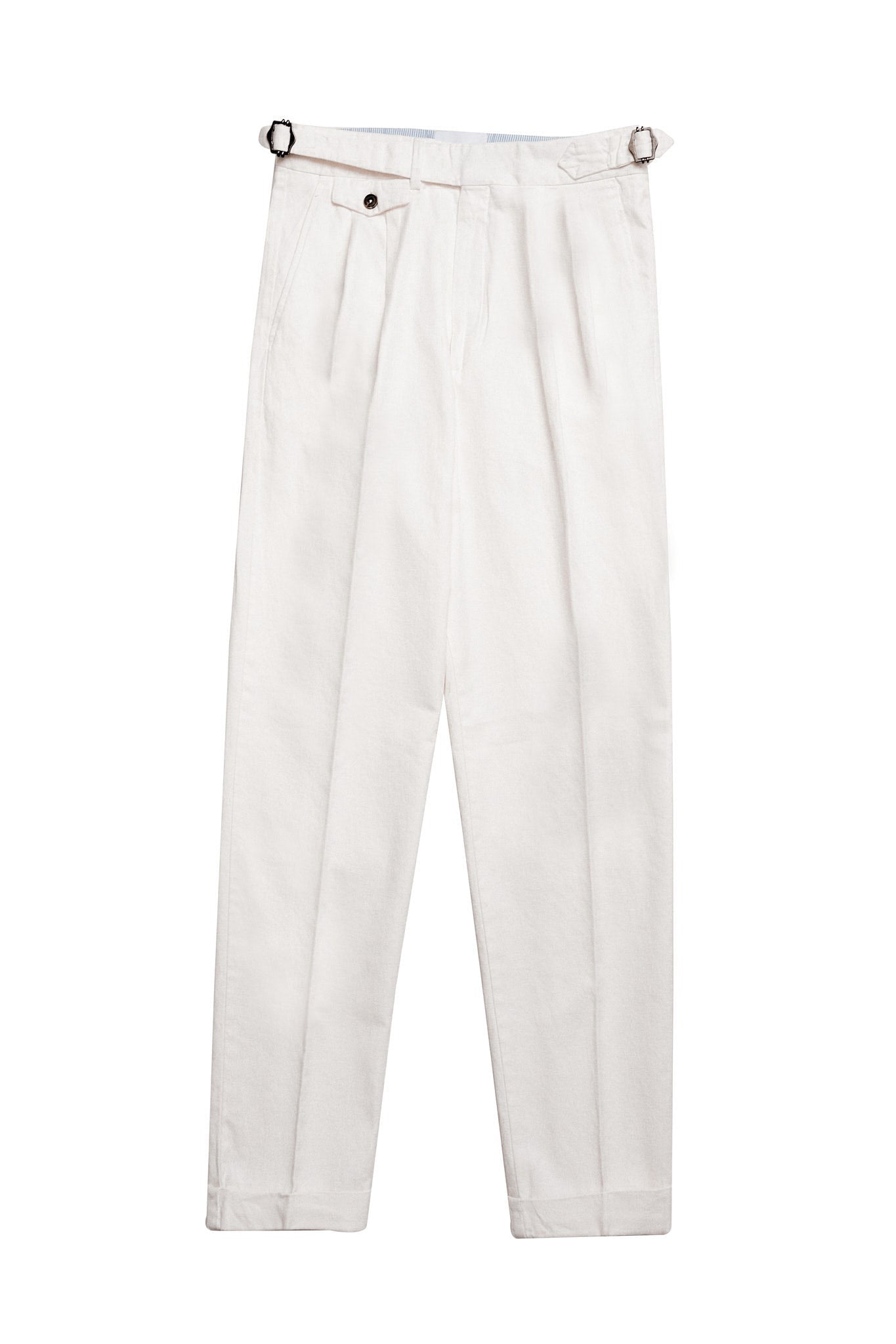 Pantalón pinzas algodón lino blanco premium