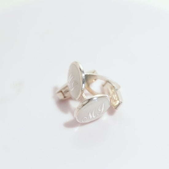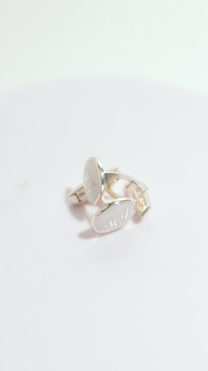 Gemelos de plata de ley 925 con forma redonda y con fondo de nácar.