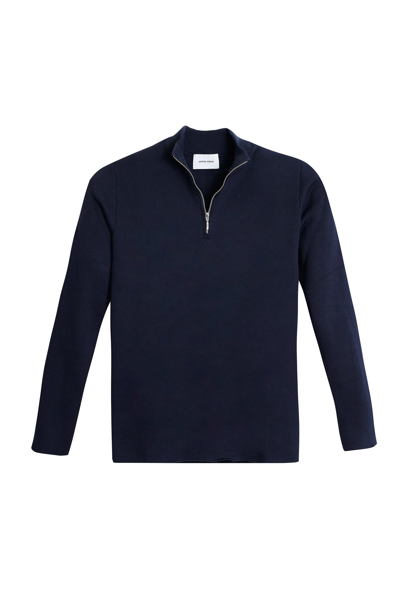 Jersey de algodón 100%, extrafino y con cierre de 1/4 cremallera. Color azul marino. Una reinterpretación del cásico jersey de cremallera con el twist Hippie Crew.