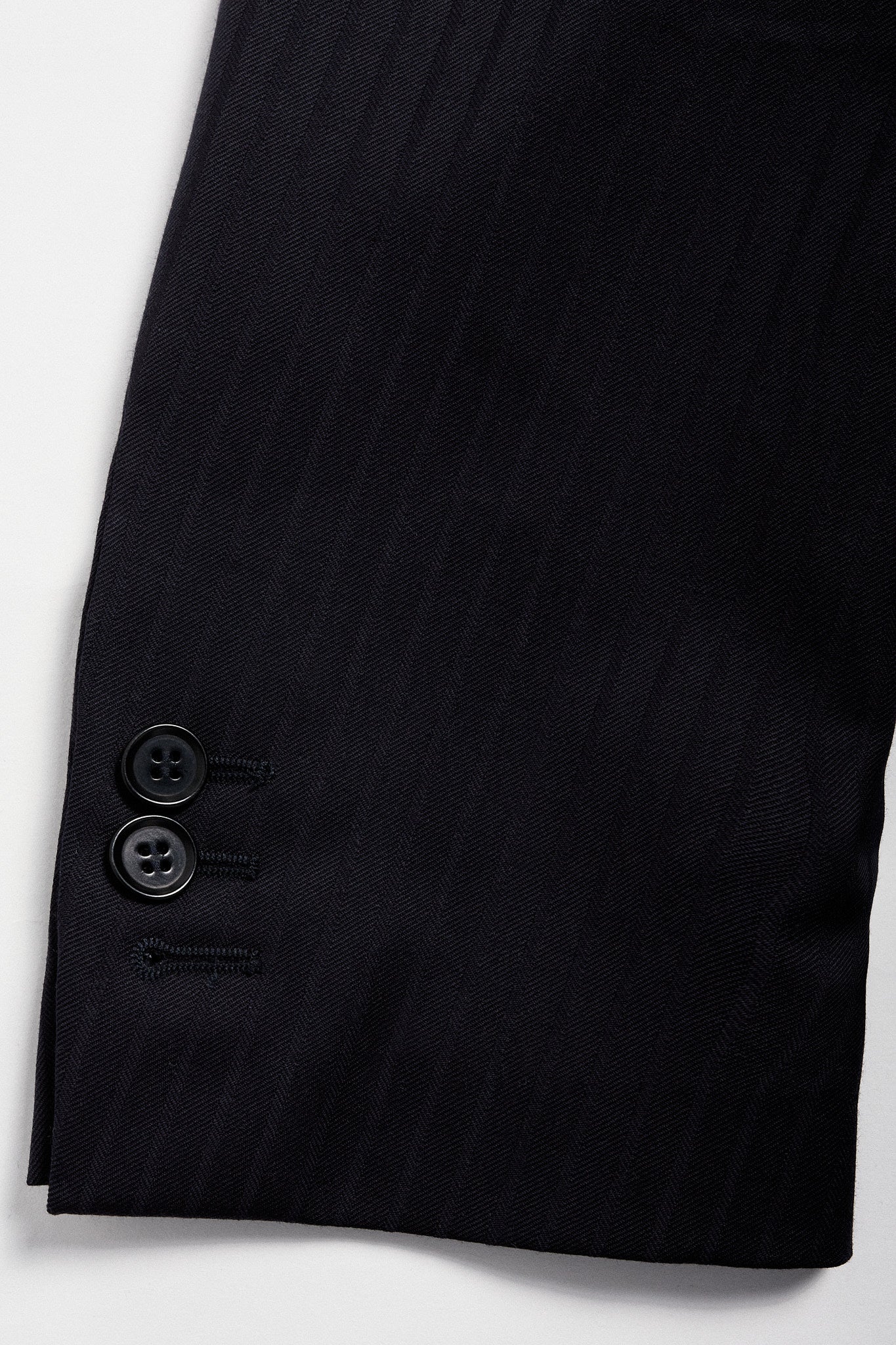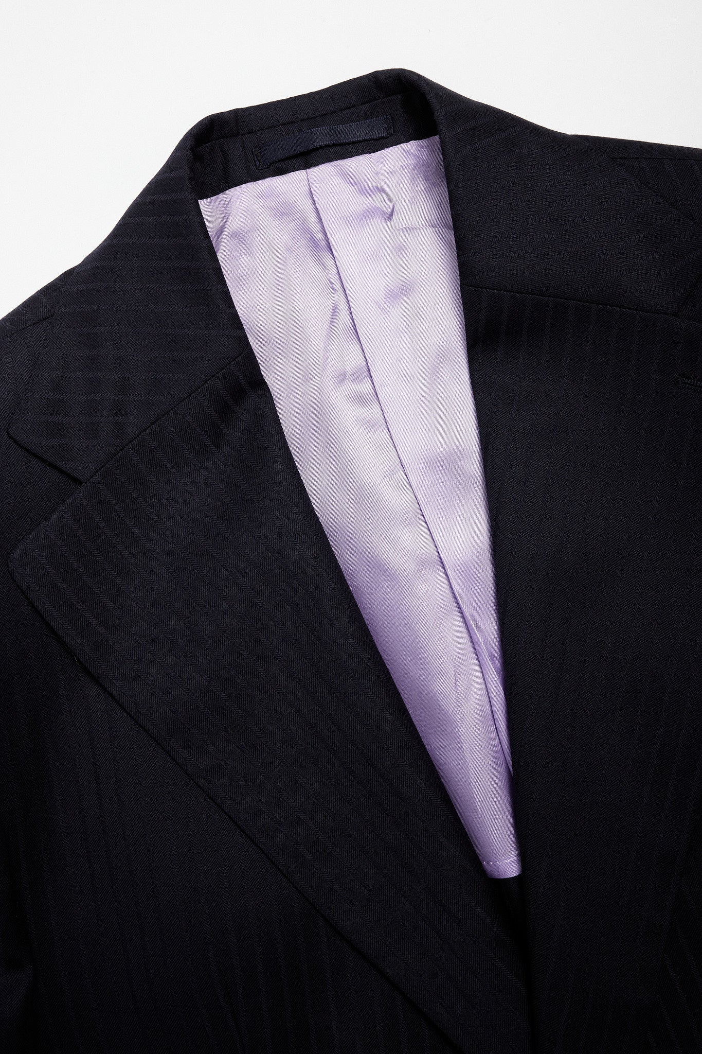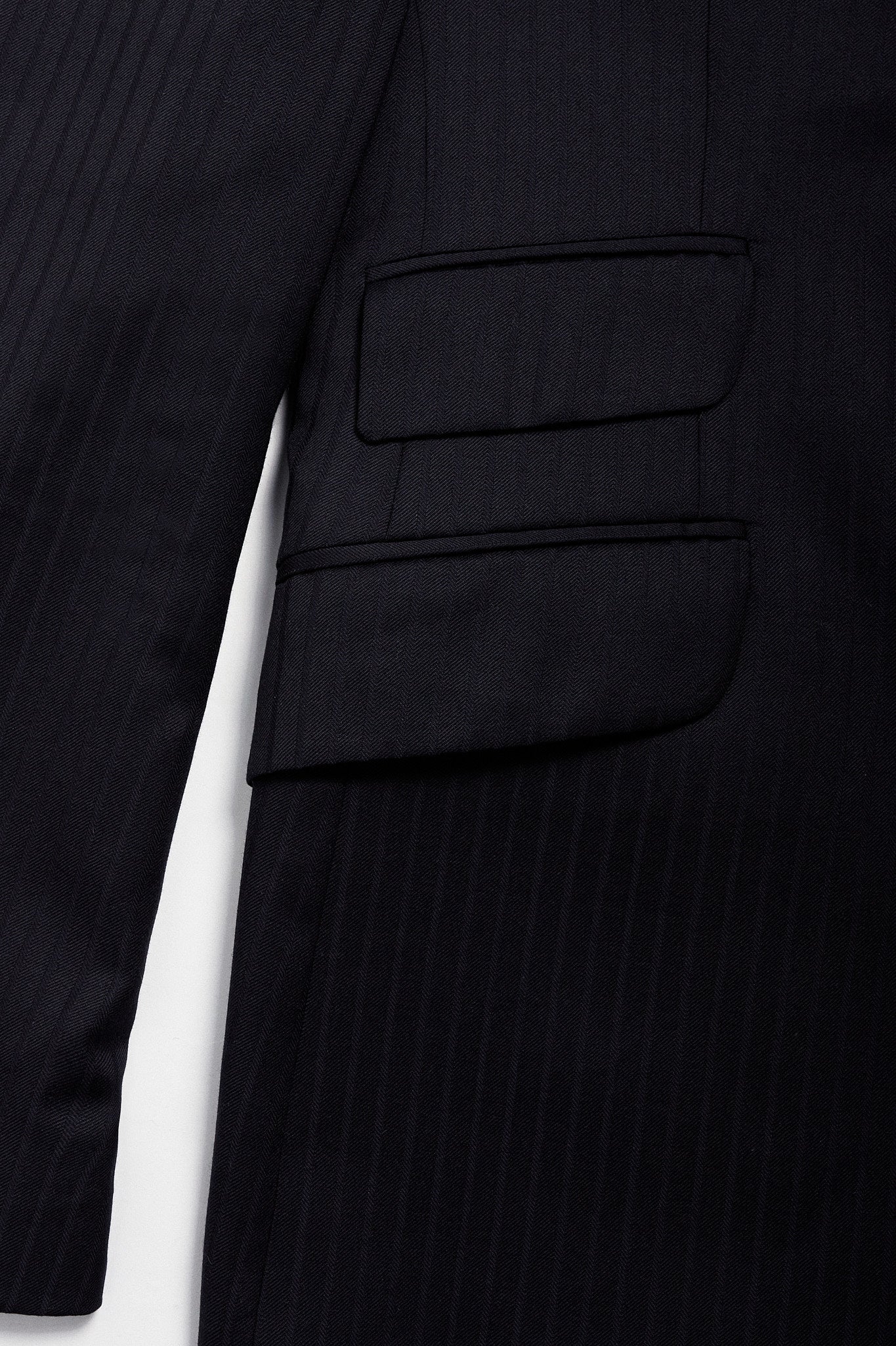 Americana de traje azul noche con rayas espigadas al tono.