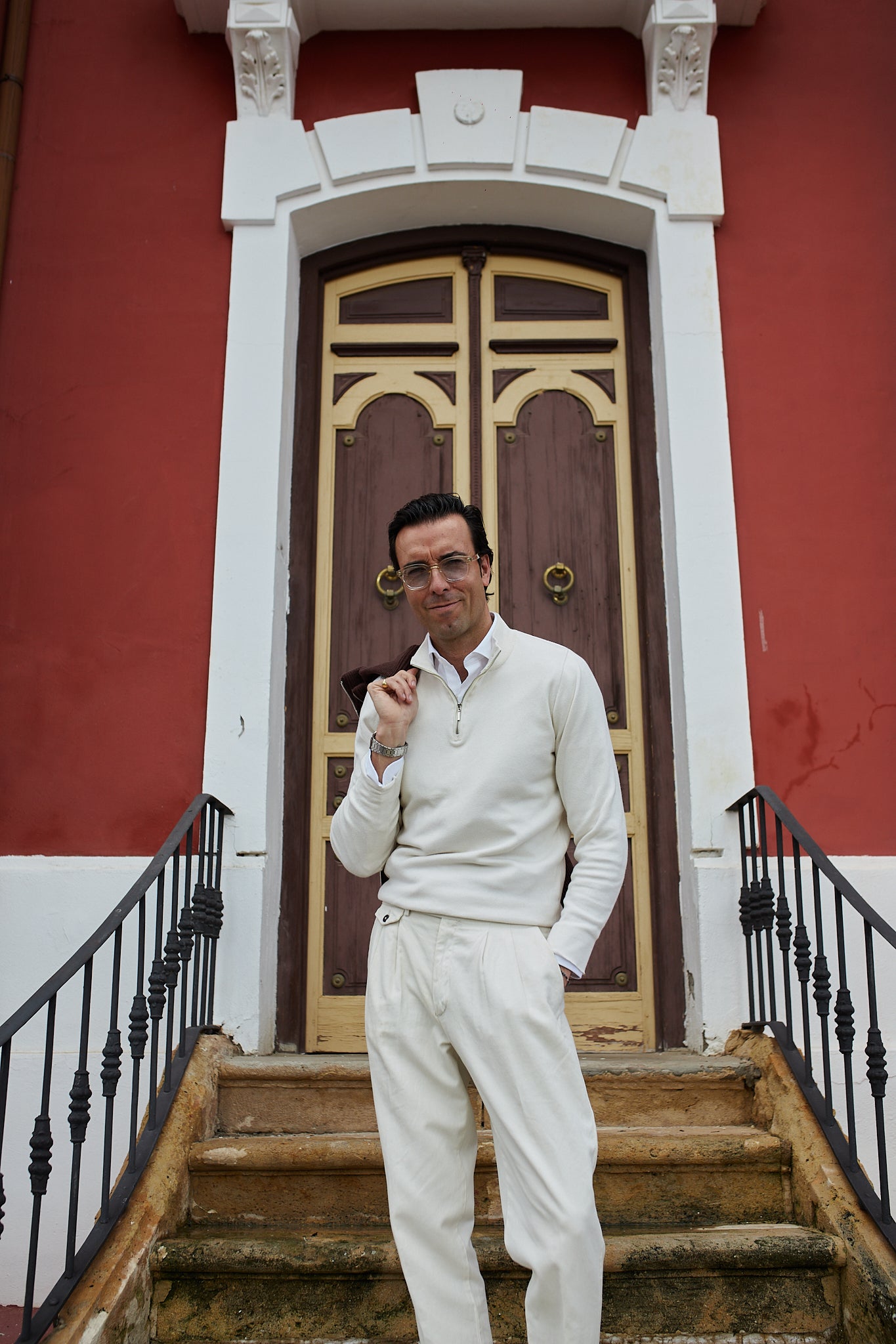Jersey de algodón 100%, extrafino y con cierre de 1/4 cremallera. Color crema. Una reinterpretación del cásico jersey de cremallera con el twist Hippie Crew.